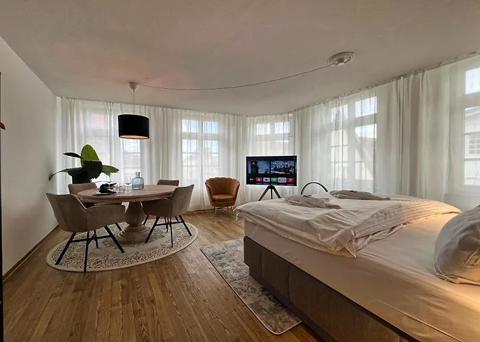 Az apartman egy 5 perces sétára fekszik a Perzina-Haus területétől. A vendégek a német konyha ételeit élvezhetik a Zeppelin Restaurant konyhájából, alig 150 méter távolságra.